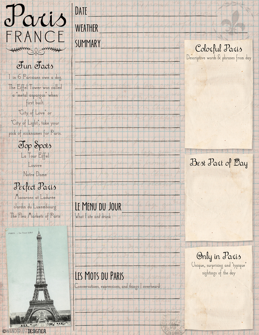 City Pages: Printable Paris Journal Page by Wanderlust Designer