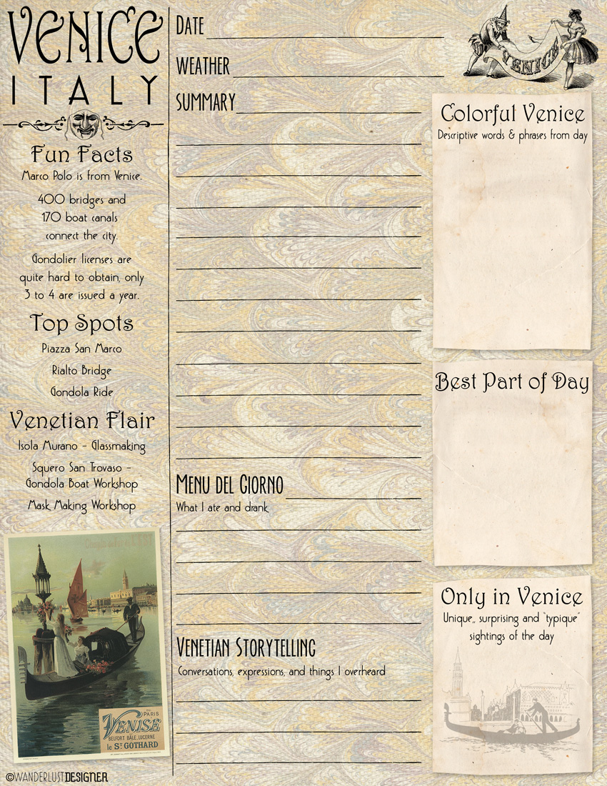 Free Printable Venice Journal Page by Wanderlust Designer