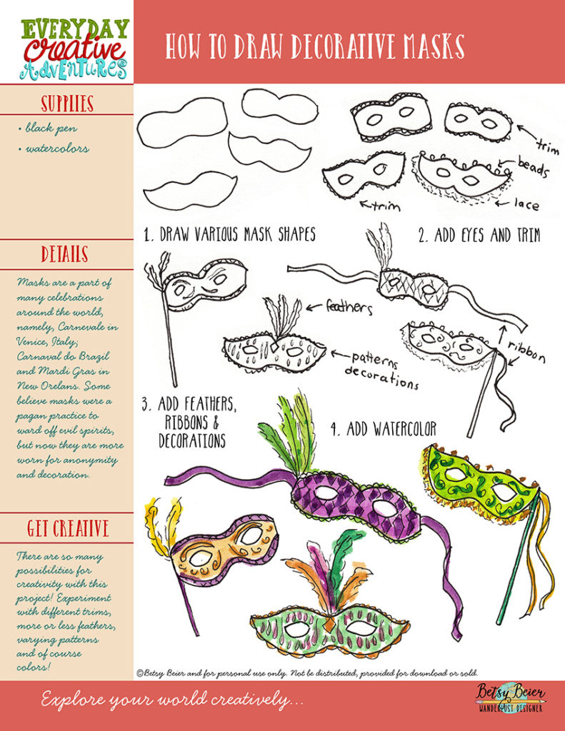 Masks are a part of many celebrations around the world, namely Carnevale in Venice, Italy; Carnaval do Brazil; and Mardi Gras in New Orleans. Some believe masks were a pagan practice to ward off evil spirits, but now they are more worn for anonymity and decoration. Enjoy this tutorial and have fun designing your own decorative mask for any occasion.