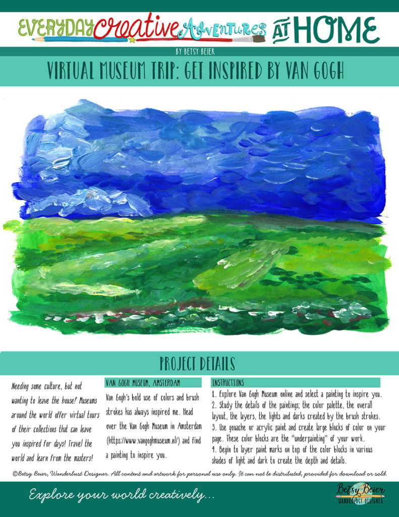 I’d love to see what you create after you make your virtual tour of the Van Gogh Museum! Feel free to tag me on @wanderlustdesigner on Instagram or Facebook or email me: betsy@wanderlustdesigner.com with your creations!