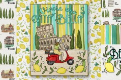 I have yet to meet someone who has traveled to Italy and hasn’t fallen in love with the country. Whether it’s the incredible Italian food, the enchanting piazzas, the historic sites, the Mediterranean cypress blowing in the breeze, or just the earth-toned patina that graces every wall and building, there is lots to love in Italy. Here is a collection of patterns and illustrations I created, called Bella Italia, that celebrate the good life in Italy! If you are interested in licensing the illustrations or patterns in this collection, please contact me for details.