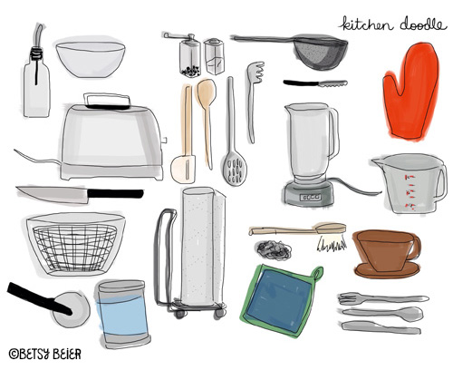 Monday – Doodle kitchen items (utensils, appliances, etc.)