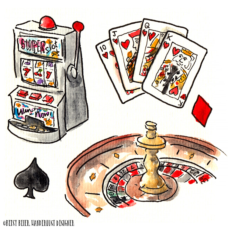 Wednesday – Paint things seen in a casion – cards, poker chips, games, slot machines and more.