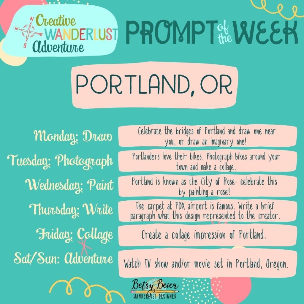 Portland, Oregon is the epitome of creativity! In celebration of my new book, Wanderlust Portland, let’s dive into some fun PDX inspired creative prompts!!! From bridges to roses, there is no shortage of artsy adventures. I can’t wait to share with you loads of details about PDX (in my book) as well as inspire you with ideas on how to explore this city creatively. So, let’s get exploring with some creative prompts below!