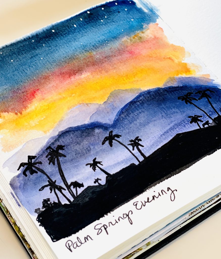 Creative Wanderlust Prompt: Watercolor a Palm Springs Sunset