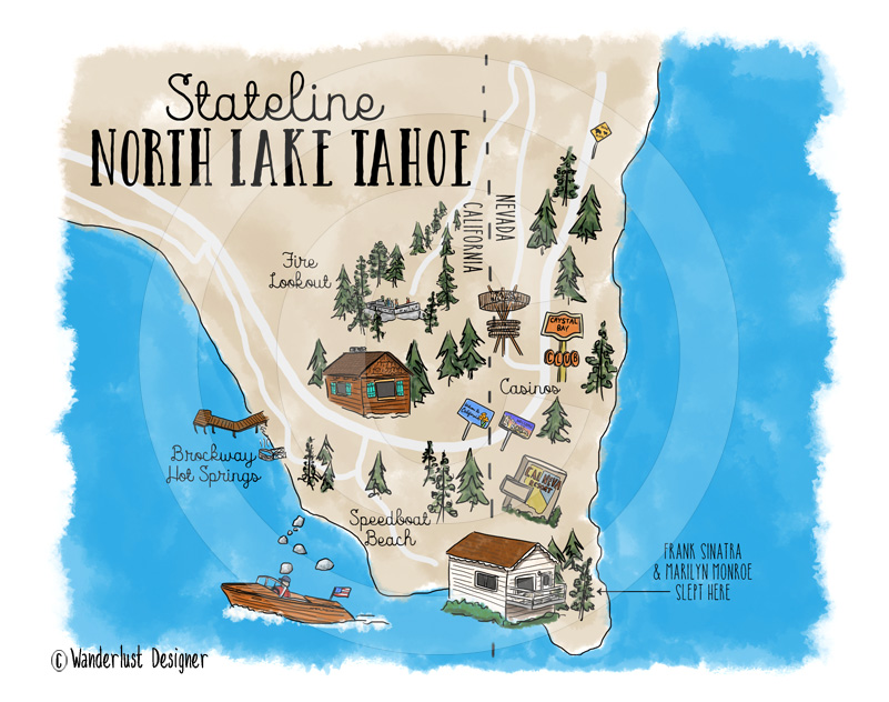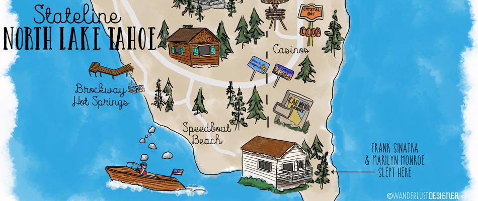 Stateline North Lake Tahoe is one of my favorites spots on Earth! I’ve been vacationing summers and winters here since I was a tiny baby. I even lived at Lake Tahoe for 2 years and worked as a designer just inches from where this map depicts.