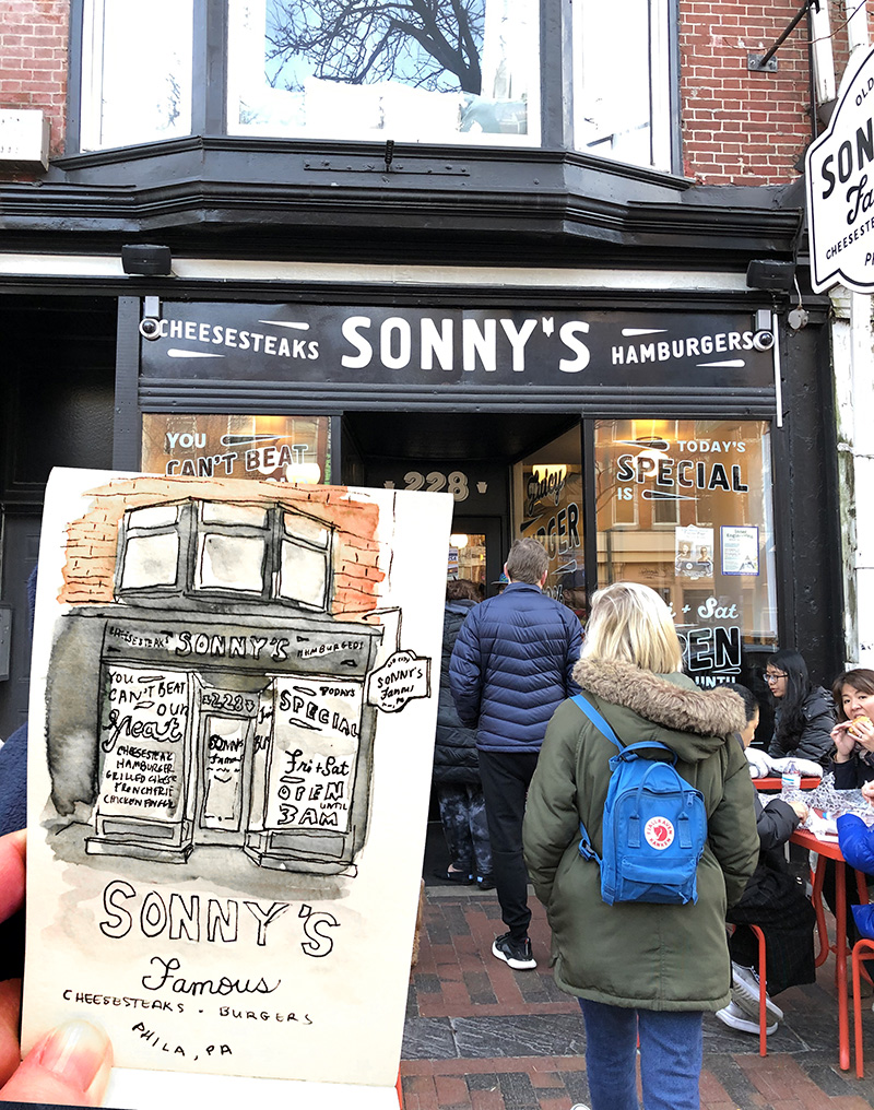 Taking your art on the go, and sketching on a trip has also allowed me to meet wonderful people and soak up the vibe of the area. I’ve met locals and tourists alike all curious what I am up to, and particularly interested in what I decided to draw. I find an open sketch book can be an invitation for conversation, a way for people to feel they can approach and talk to me, an opportunity that would otherwise not arise.