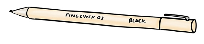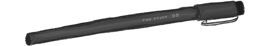 My go-to black pen are Sakura Pigma Micron Pens, aka “Microns” as most people call it. They come in a variety of widths, from very fine line 005 to thick 1.0. In general, these are all fine tipped markers, but the more you experience the line weight difference, the more you can use them effectively. My only complaint with Micron pens is that they do dry up relatively quickly (I use mine daily so this may have to do with it too.) But, for the price I find them worth it and have been using them regularly for years. Below are some links where you can purchase them online: